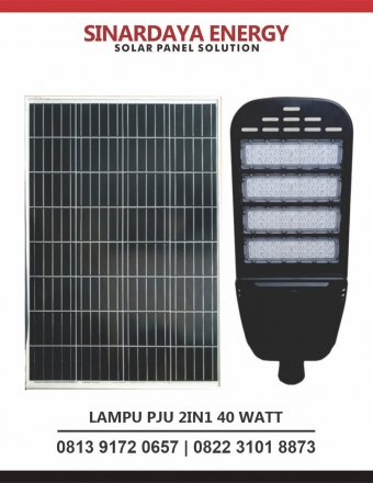 Lampu Tenaga Surya Model 2In1 40 Watt Lampu Tenaga Surya 40W merupakan tipe 2in1 terbaik adalah produk keluaran terbaru untuk lampu penerangan jalan umum yang sangat praktis dan efisien. Dengan harga lampu PJU solar cell yang murah dan ekonomis dapat menjadikan lampu PJU solar cell tipe 2in1 ini menjadi solusi bagi anda dalam kebutuhan project…