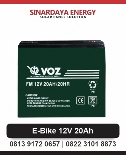 Aki Sepeda Listrik VOZ 12V 20Ah merupakan salah satu tipe baterai yang sesuai untuk speda listrik karena penyimpanan yang stabil dan dalam waktu yang lama. Baterai/Aki sepeda listrik jenis ini memiliki ketahanan terhadap siklus, atau sering disebut cycle, pengisian (charge) dan pelepasan (discharge) yang berulang-ulang juga konstan.